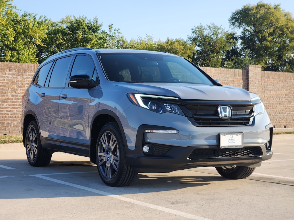 3rd row seats: split-bench, 4-Wheel Disc Brakes, 4.33 Axle Ratio, 7 Speakers, A/V remote: CabinControl, ABS brakes, Air Conditioning, Alloy wheels, AM/FM radio: SiriusXM, Apple CarPlay/Android Auto, Auto High-beam Headlights, Automatic temperature control, Blind Spot Information (BSI) System warning, Brake assist, Bumpers: body-color, Cloth Seat Trim, Delay-off headlights, Driver door bin, Driver vanity mirror, Dual front impact airbags, Dual front side impact airbags, Electronic Stability Control, Emergency communication system: HondaLink Assist, Exterior Parking Camera Rear, Forward collision: Collision Mitigation Braking System (CMBS) + FCW mitigation, Four wheel independent suspension, Front anti-roll bar, Front Bucket Seats, Front Center Armrest, Front dual zone A/C, Front fog lights, Front reading lights, Fully automatic headlights, Heated door mirrors, Heated Front Bucket Seats, Heated front seats, Illuminated entry, Lane departure: Lane Keeping Assist System (LKAS) active, Low tire pressure warning, Occupant sensing airbag, Outside temperature display, Overhead airbag, Overhead console, Panic alarm, Passenger door bin, Passenger vanity mirror, Power door mirrors, Power driver seat, Power steering, Power windows, Radio data system, Radio: 215-Watt Audio System, Rear air conditioning, Rear anti-roll bar, Rear reading lights, Rear seat center armrest, Rear window defroster, Rear window wiper, Reclining 3rd row seat, Remote keyless entry, Roof rack: rails only, Security system, Speed control, Speed-sensing steering, Speed-Sensitive Wipers, Split folding rear seat, Spoiler, Steering wheel mounted audio controls, Tachometer, Telescoping steering wheel, Tilt steering wheel, Traction control, Trip computer, Turn signal indicator mirrors, Variably intermittent wipers, Wheels: 20 Pewter Gray Alloy.