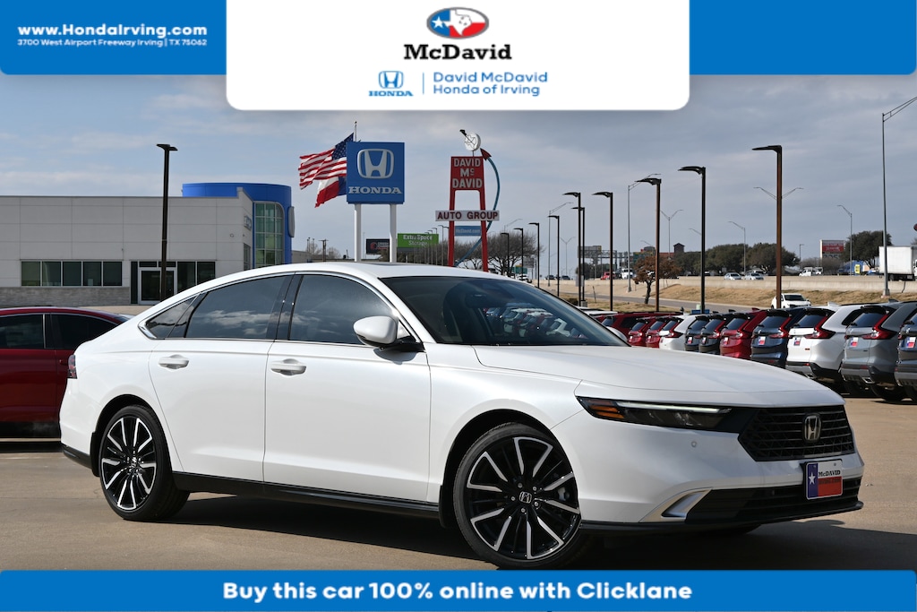 This Platinum White Pearl 2025 Honda Accord Hybrid Touring is priced to sell fast! David McDavid Honda of Irving prides itself on value pricing its vehicles and exceeding all customer expectations! The next step? Give us a call to confirm availability and schedule a hassle free test drive! We are located at: 3700 W Airport Fwy, Irving, TX 75062. "" Contact our Internet Department at our Toll Free Number for your No Hassle Price. David McDavid of Irving has been serving the Dallas Fort Worth Metroplex for over 70 years at one location. * All New Honda website pricing excludes TT&L and Dealer installed equipment.""