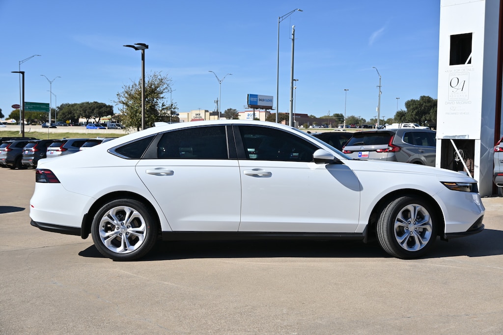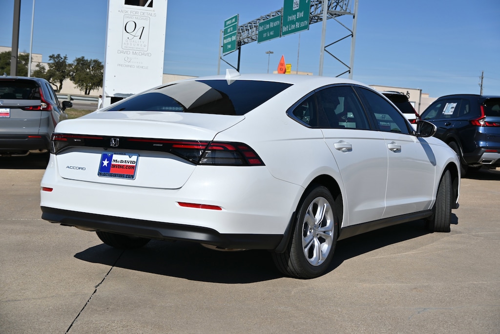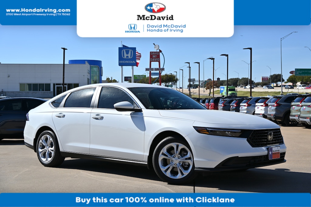 This Platinum White Pearl 2025 Honda Accord Sedan LX is priced to sell fast! David McDavid Honda of Irving prides itself on value pricing its vehicles and exceeding all customer expectations! The next step? Give us a call to confirm availability and schedule a hassle free test drive! We are located at: 3700 W Airport Fwy, Irving, TX 75062. "" Contact our Internet Department at our Toll Free Number for your No Hassle Price. David McDavid of Irving has been serving the Dallas Fort Worth Metroplex for over 70 years at one location. * All New Honda website pricing excludes TT&L and Dealer installed equipment.""