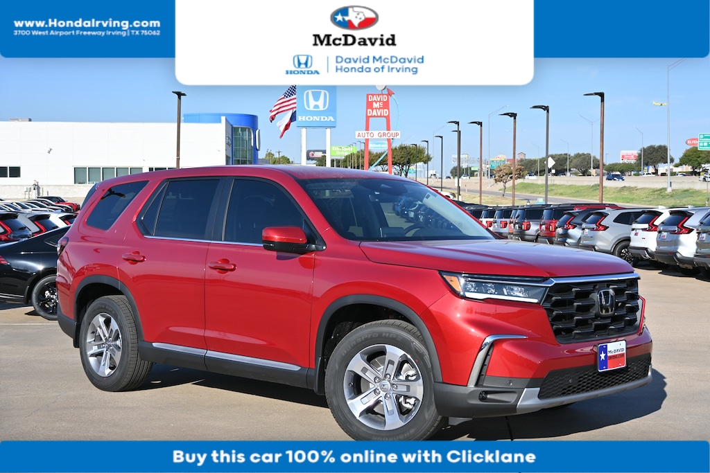 PRICED TO SELL QUICKLY! RESEARCH SUGGESTS IT WILL NOT BE AVAILABLE FOR LONG. This 2025 Honda Pilot EX-L has a sharp Radiant Red Metallic Ii exterior and a super clean Black interior! Our vehicles are value priced and move quickly. Be sure to call us to confirm availability and to schedule a hassle free test drive! We are located at: 3700 W Airport Fwy, Irving, TX 75062. "" Contact our Internet Department at our Toll Free Number for your No Hassle Price. David McDavid of Irving has been serving the Dallas Fort Worth Metroplex for over 70 years at one location. * All New Honda website pricing excludes TT&L and Dealer installed equipment.""