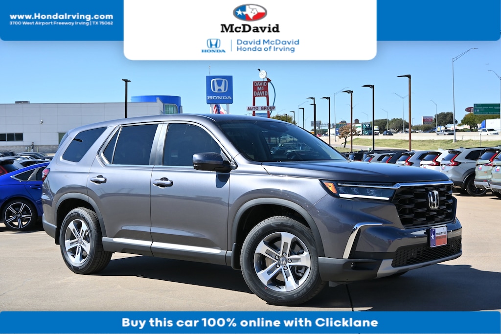 This 2025 Honda Pilot EX-L is Modern Steel Metallic with a Black interior. Buy with confidence knowing David McDavid Honda of Irving has been exceeding customer expectations for many years and will always provide customers with a great value! "" Contact our Internet Department at our Toll Free Number for your No Hassle Price. David McDavid of Irving has been serving the Dallas Fort Worth Metroplex for over 70 years at one location. * All New Honda website pricing excludes TT&L and Dealer installed equipment.""