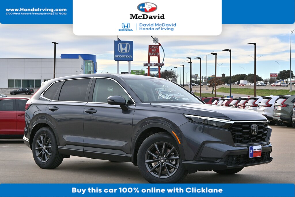 This Meteorite Gray Metallic 2026 Honda CR-V EX-L is priced to sell fast! David McDavid Honda of Irving prides itself on value pricing its vehicles and exceeding all customer expectations! The next step? Give us a call to confirm availability and schedule a hassle free test drive! We are located at: 3700 W Airport Fwy, Irving, TX 75062. "" Contact our Internet Department at our Toll Free Number for your No Hassle Price. David McDavid of Irving has been serving the Dallas Fort Worth Metroplex for over 70 years at one location. * All New Honda website pricing excludes TT&L and Dealer installed equipment.""