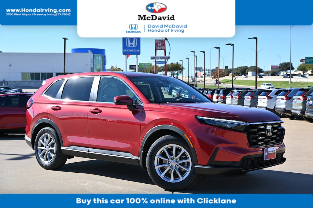 PRICED TO SELL QUICKLY! Research suggests it will not be available for long. This 2026 Honda CR-V EX has a great looking Radiant Red Metallic exterior and a Gray interior! This CR-V has many valuable options: -Backup Camera- -Bluetooth- -AM/FM Radio- -Aux Audio Input- -Heated Front Seats- -Auto Climate Control- -High Intensity Headlights- -Automatic Headlights- -Rear Seat Pass-Through- -Front Wheel Drive- -Multi-Zone Air Conditioning- -Remote Start- -Security System- -Power Locks- -Keyless Entry- -Keyless Start/Push Button Start- -Power Windows- -Power Mirrors- -Remote Engine Start- -Power Driver's Seat- -Steering Wheel Controls- -Cruise Control- -Rear Bench Seats- -Alloy Wheels- On top of all that, it has MANY safety features. -ABS Brakes- -Brake Assist- -Traction Control- -Stability Control- Our pricing is very competitive and our vehicles sell quickly. Please call us to confirm availability and to setup a time to drive this CR-V! Contact us at (469) 405-3340. We are located at 3700 W Airport Fwy, Irving, TX 75062
