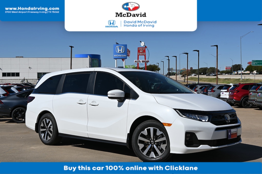 PRICED TO SELL QUICKLY! Research suggests it will not be available for long. This 2026 Honda Odyssey EX-L looks great with a clean Black interior and Platinum White Pearl exterior! -Leather Seats- -Heated Front Seats- -3rd Row Seating- -Backup Camera- -Front Wheel Drive- -Bluetooth- -AM/FM Radio- -Aux Audio Input- -Auto Climate Control- -Multi-Zone Air Conditioning- -Leather Steering Wheel- -Power Liftgate- -Satellite Radio- -High Intensity Headlights- -Alloy Wheels- Our pricing is very competitive and our vehicles sell quickly. Please call us to confirm availability and to setup a time to drive this Odyssey! Please Contact us at (469) 405-3340. WE ARE LOCATED AT 3700 W Airport Fwy, Irving, TX 75062