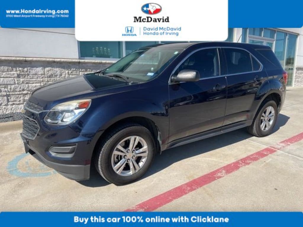 New Arrival! This 2016 Chevrolet Equinox LS has a sharp Blue Velvet Metallic exterior and a super clean Jet Black interior! Bluetooth Keyless Entry Backup Camera You can find more information on this Equinox on our website: https://www.mcdavidhondairving.com/. Our vehicles are value priced and move quickly. Be sure to call us to confirm availability and to schedule a hassle free test drive (469) 405-3340! We are located at: 3700 W Airport Fwy, Irving, TX 75062. For more than 70 years, David McDavid Honda of Irving has been serving the automotive needs of drivers throughout the Dallas Fort Worth Metroplex. We stock a large selection of new and used Honda cars at great prices. If you need assistance with choosing a new car, obtaining financing, or have service and repair questions, our friendly and knowledgeable staff will get your questions answered. Our dealership is located in Irving, but we proudly serve the Dallas, Fort Worth, Arlington, and Grand Prairie and DFW area.Pre-Owned 2016 ChevroletEquinox