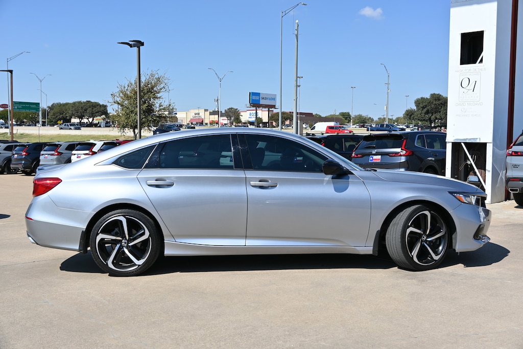 New Arrival! THIS ACCORD SEDAN IS CERTIFIED! CARFAX ONE OWNER! PRICED TO SELL QUICKLY! RESEARCH SUGGESTS IT WILL NOT BE AVAILABLE FOR LONG. This 2022 Honda Accord Sedan Sport SE has a sharp Lunar Silver Metallic exterior and a super clean Black interior! Bluetooth Heated Front Seats Keyless Entry Remote Start Backup Camera LOW MILES FOR A 2022! leather seats! You can find more information on this Accord Sedan on our website: https://www.mcdavidhondairving.com/. Our vehicles are value priced and move quickly. Be sure to call us to confirm availability and to schedule a hassle free test drive (469) 405-3340! We are located at: 3700 W Airport Fwy, Irving, TX 75062. For more than 70 years, David McDavid Honda of Irving has been serving the automotive needs of drivers throughout the Dallas Fort Worth Metroplex. We stock a large selection of new and used Honda cars at great prices. If you need assistance with choosing a new car, obtaining financing, or have service and repair questions, our friendly and knowledgeable staff will get your questions answered. Our dealership is located in Irving, but we proudly serve the Dallas, Fort Worth, Arlington, and Grand Prairie and DFW area.Pre-Owned 2022 HondaAccord Sport SE 1.5T