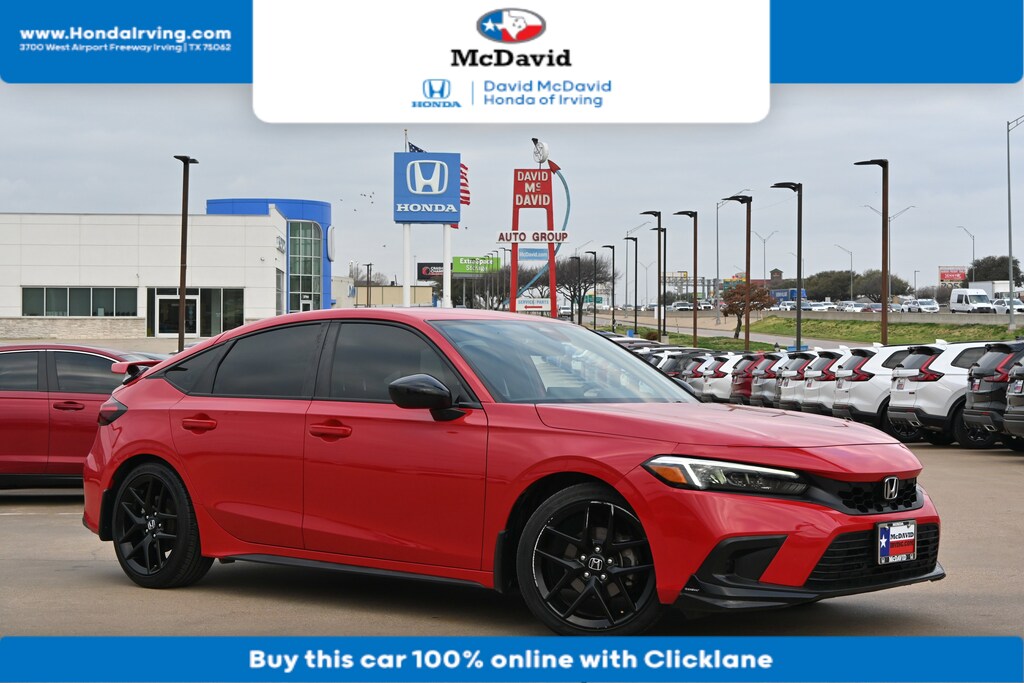 This 2023 Honda Civic Hatchback Sport looks great with a clean Black interior and Rallye Red exterior! Bluetooth Keyless Entry Remote Engine Start Back Up Camera PRICED TO SELL QUICKLY! RESEARCH SUGGESTS IT WILL NOT BE AVAILABLE FOR LONG. -GREAT GAS MILEAGE- If you view our website at: https://www.mcdavidhondairving.com/ you will have access to more photos, the full Value Report and a Vehicle History Report! Please call (469) 405-3340 Call us today to schedule a hassle-free test drive at our Toll Free Number! We are located at: 3700 W Airport Fwy, Irving, TX 75062. For more than 70 years, David McDavid Honda of Irving has been serving the automotive needs of drivers throughout the Dallas Fort Worth Metroplex. We stock a large selection of new and used Honda cars at great prices. If you need assistance with choosing a new car, obtaining financing, or have service and repair questions, our friendly and knowledgeable staff will get your questions answered. Our dealership is located in Irving, but we proudly serve the Dallas, Fort Worth, Arlington, and Grand Prairie and DFW area.Pre-Owned 2023 HondaCivic Sport
