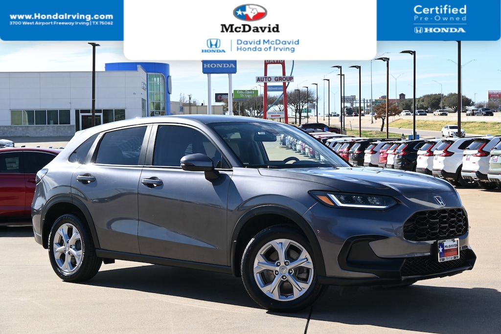 This 2023 HR-V has a very popular Modern Steel Metallic exterior color with Gray that looks fantastic! Bluetooth Keyless Entry Backup Camera PRICED TO SELL QUICKLY! Research suggests it will not be available for long. -Carfax One Owner- -Certified- -Low Mileage- This Modern Steel Metallic 2023 Honda HR-V LX is priced to sell fast! Please visit our website to view the complete Value Report, Vehicle History Report and to learn more about this HR-V at https://www.mcdavidhondairving.com/ . David McDavid Honda of Irving prides itself on value pricing its vehicles and exceeding all customer expectations! The next step? Give us a call to confirm availability and schedule a hassle free test drive (469) 405-3340! We are located at: 3700 W Airport Fwy, Irving, TX 75062. For more than 70 years, David McDavid Honda of Irving has been serving the automotive needs of drivers throughout the Dallas Fort Worth Metroplex. We stock a large selection of new and used Honda cars at great prices. If you need assistance with choosing a new car, obtaining financing, or have service and repair questions, our friendly and knowledgeable staff will get your questions answered. Our dealership is located in Irving, but we proudly serve the Dallas, Fort Worth, Arlington, and Grand Prairie, and DFW area.Pre-Owned 2023 HondaHR-V LX AWD