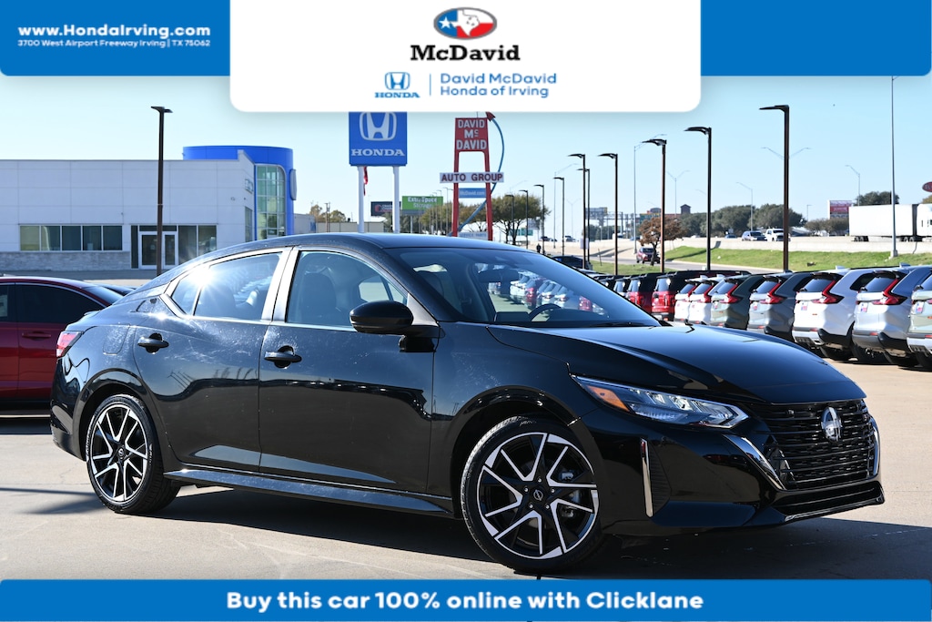This 2024 Sentra has a very popular Super Black exterior color with Sport that looks fantastic! Bluetooth Heated Front Seats Keyless Entry Remote Start Backup Camera Sunroof/ Moonroof PRICED TO SELL QUICKLY! Research suggests it will not be available for long. -Carfax One Owner- This Super Black 2024 Nissan Sentra SR is priced to sell fast! Please visit our website to view the complete Value Report, Vehicle History Report and to learn more about this Sentra at https://www.mcdavidhondairving.com/ . David McDavid Honda of Irving prides itself on value pricing its vehicles and exceeding all customer expectations! The next step? Give us a call to confirm availability and schedule a hassle free test drive (469) 405-3340! We are located at: 3700 W Airport Fwy, Irving, TX 75062. For more than 70 years, David McDavid Honda of Irving has been serving the automotive needs of drivers throughout the Dallas Fort Worth Metroplex. We stock a large selection of new and used Honda cars at great prices. If you need assistance with choosing a new car, obtaining financing, or have service and repair questions, our friendly and knowledgeable staff will get your questions answered. Our dealership is located in Irving, but we proudly serve the Dallas, Fort Worth, Arlington, and Grand Prairie, and DFW area.Pre-Owned 2024 NissanSentra SR